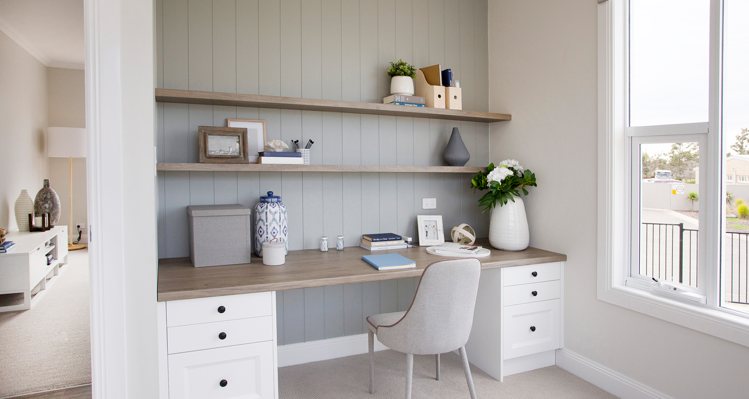Whether you’re trying to create that Hamptons style living room, want a functional study space with plenty of storage or are just looking to add a style feature to a space – built-in bookshelves are always a good idea. With our in-house cabinetry business, we have the luxury of designing custom cabinetry for our customers homes, so why not add some shelving to your new home design?
